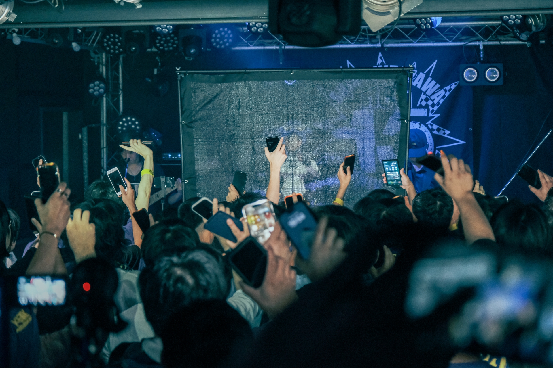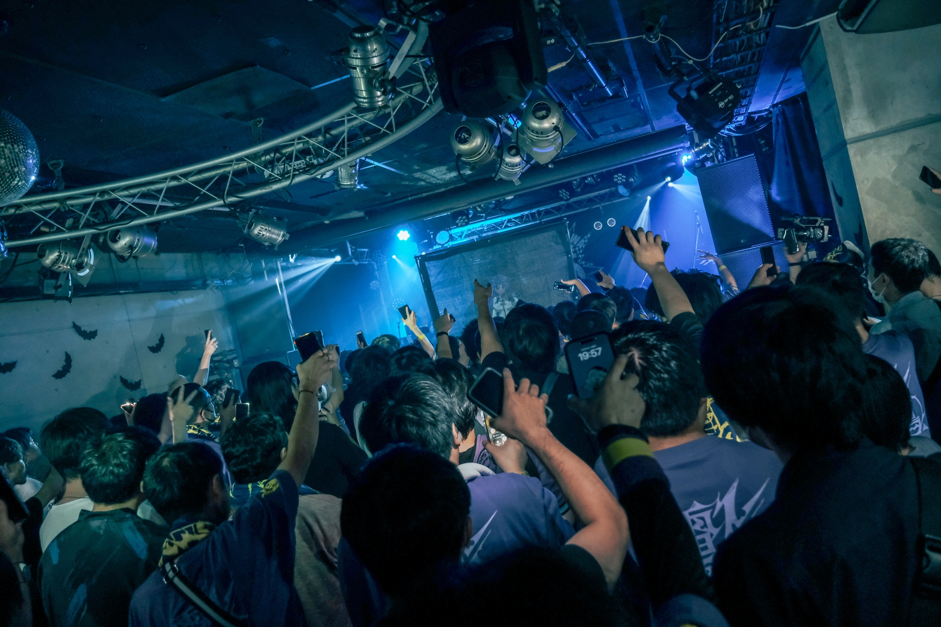 開演20分前、受付を済ませて地下のライブスペースへ向かうと、扉を開けた瞬間、目に飛び込んできた光景に圧倒される。声をかけなければ移動もままならないほど大勢のファンがひしめき合い、ライブ前の独特の高揚感と熱気が漂う空間が広がっていた。