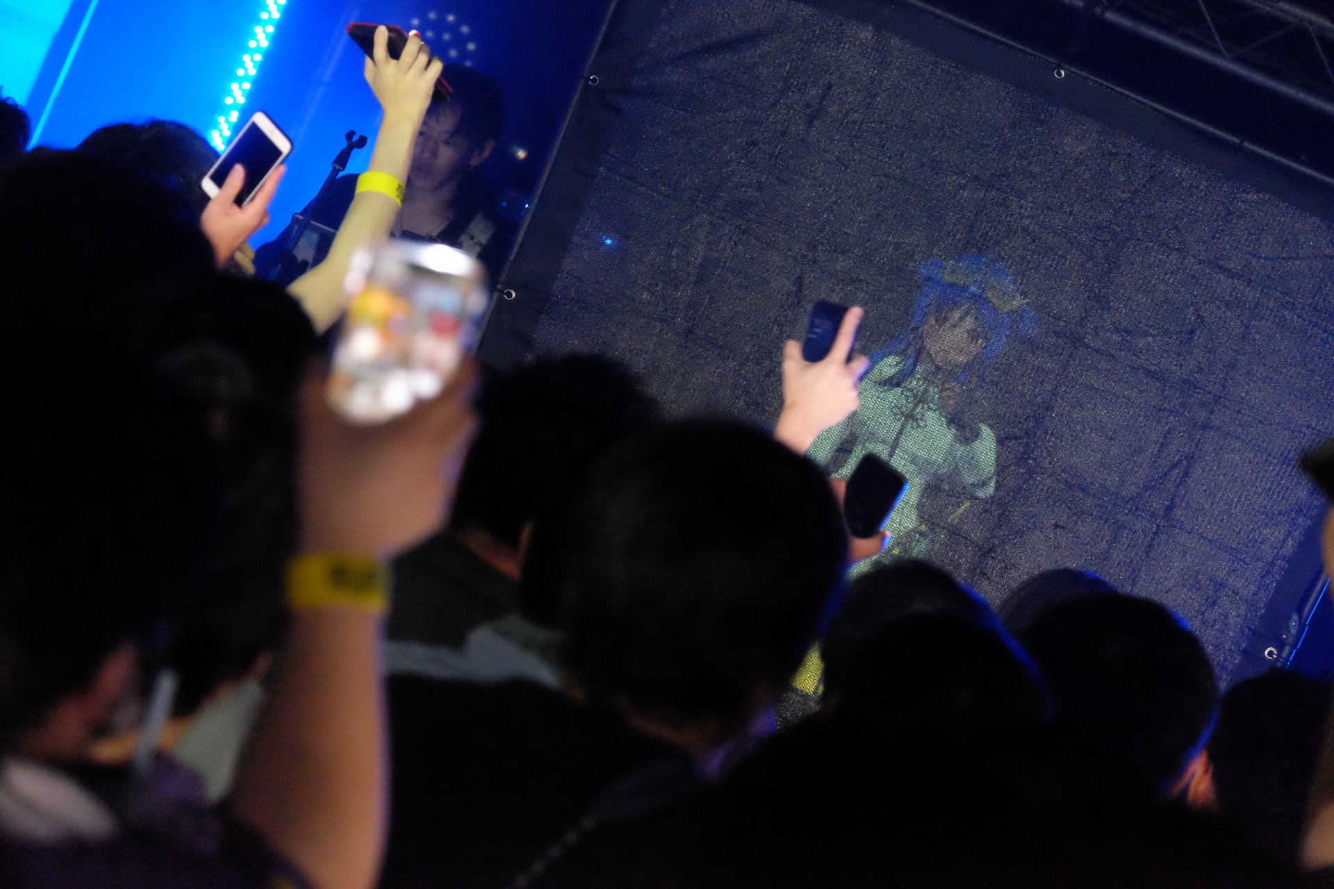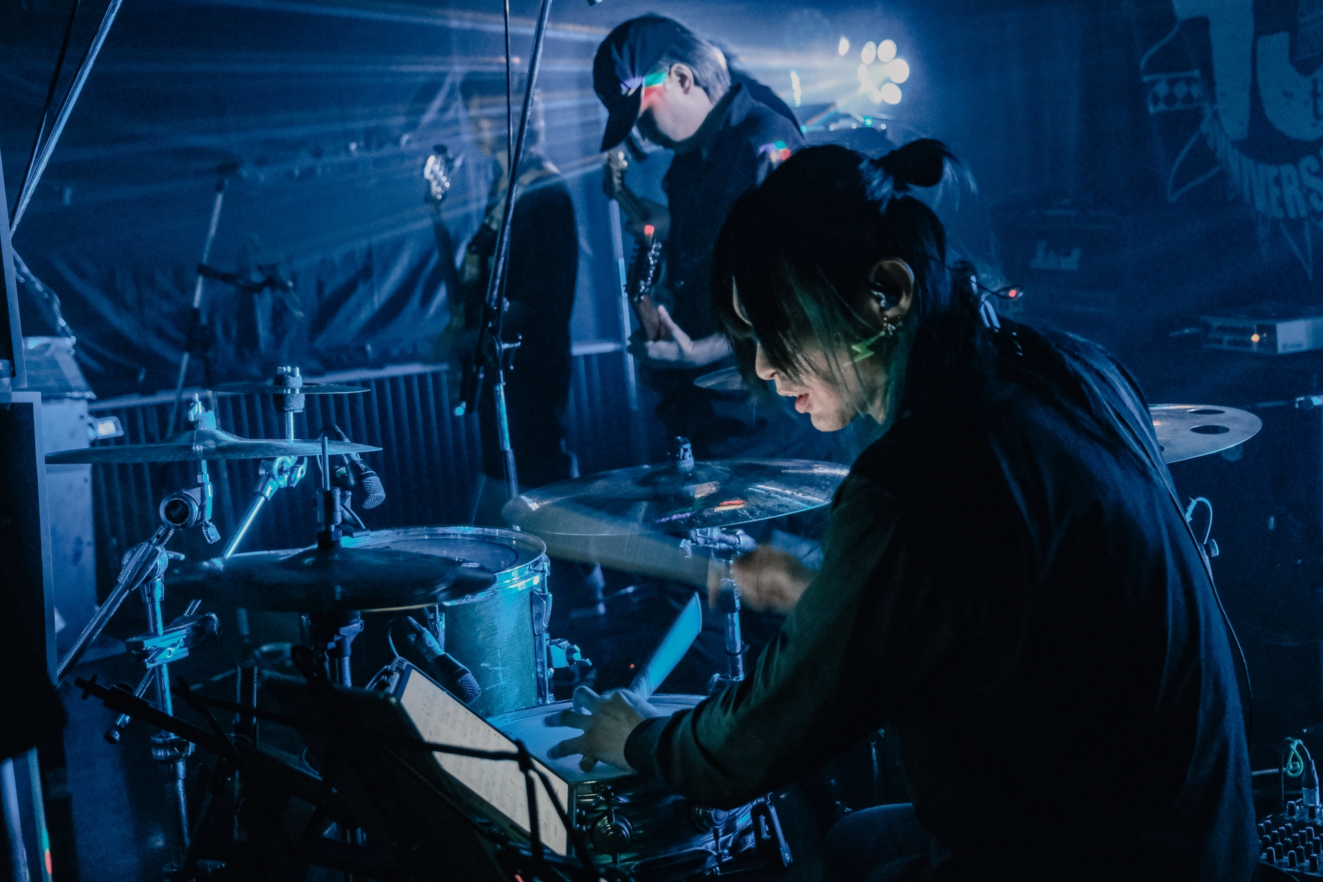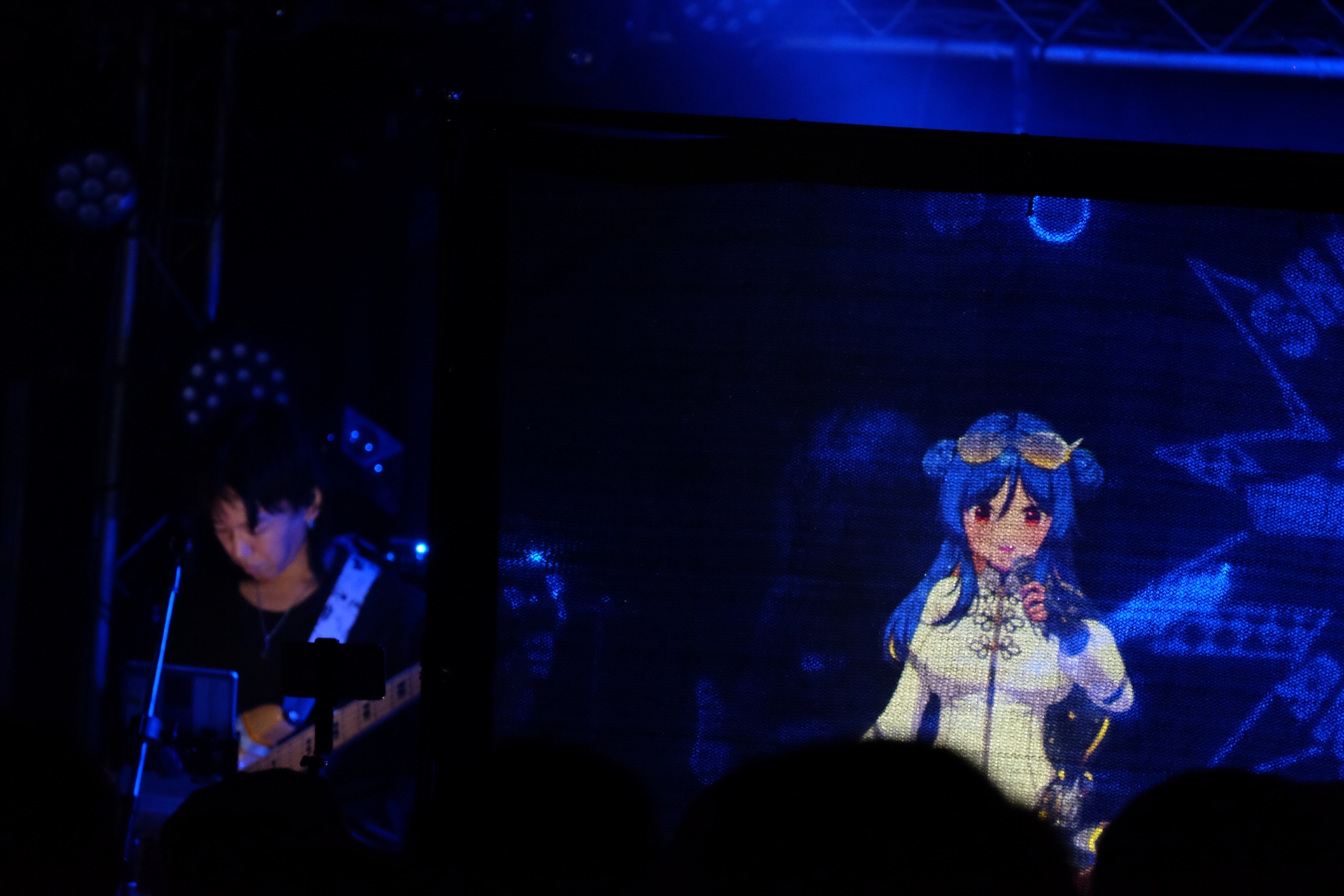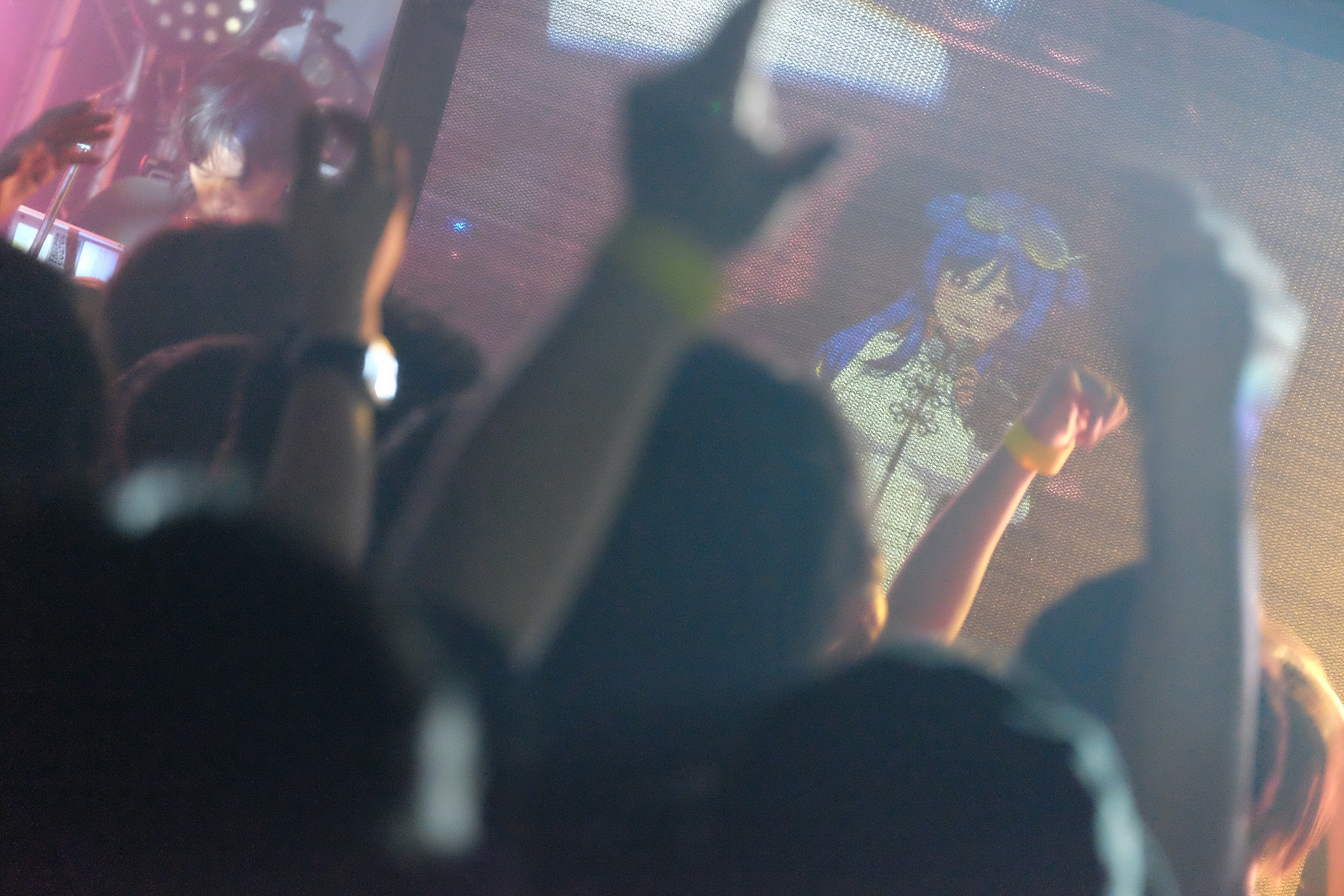 開演時間となり、バンドメンバーがステージに登場する。今回も1stワンマン同様、VTuberのリアルイベントでは珍しいバンドによる生演奏形式。チケット販売ページの「ペンライトなどの光り物や応援グッズのお持ち込みはご遠慮ください」という一文から、「ライブハウスならではの音楽を届けたい」という彼女たちの気概が伝わってくる。