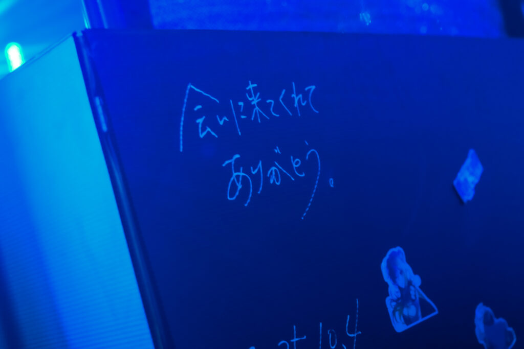 ここで最初のMC。「はろーよーるどー! 拠鳥きまゆだよ! 僕の心で、君の心を侵略しちゃうぞ!」というお馴染みの挨拶に、フロアが和む。普段の配信のような雰囲気も一瞬漂うが、本日の主役から続けてこうお願いされてしまっては、応えないわけにはいかないだろう。