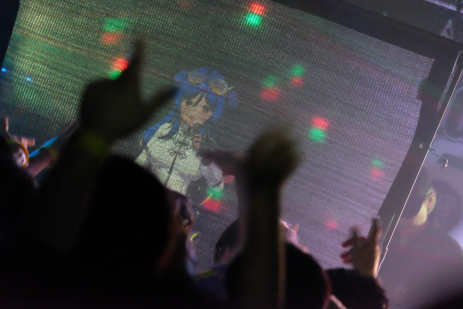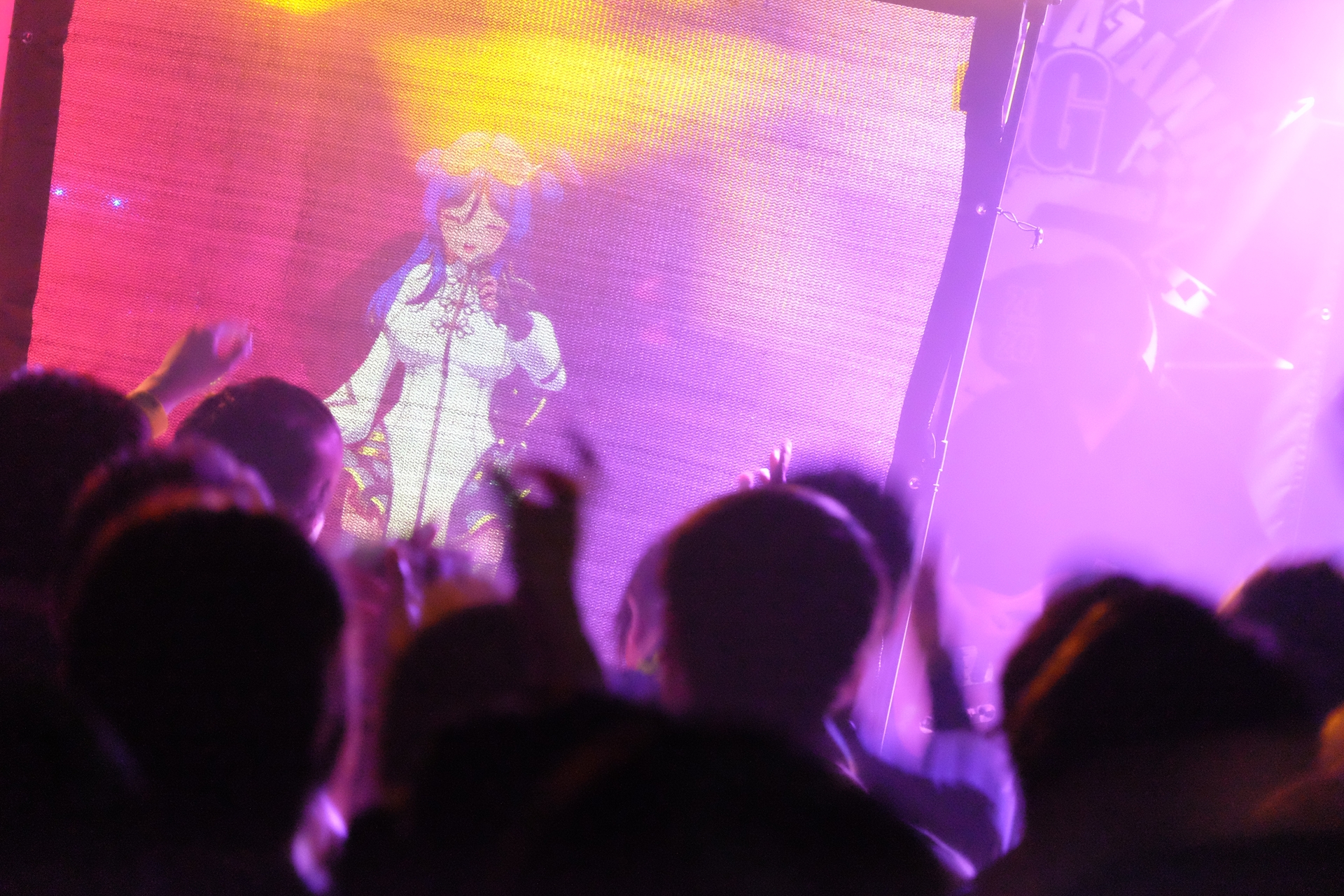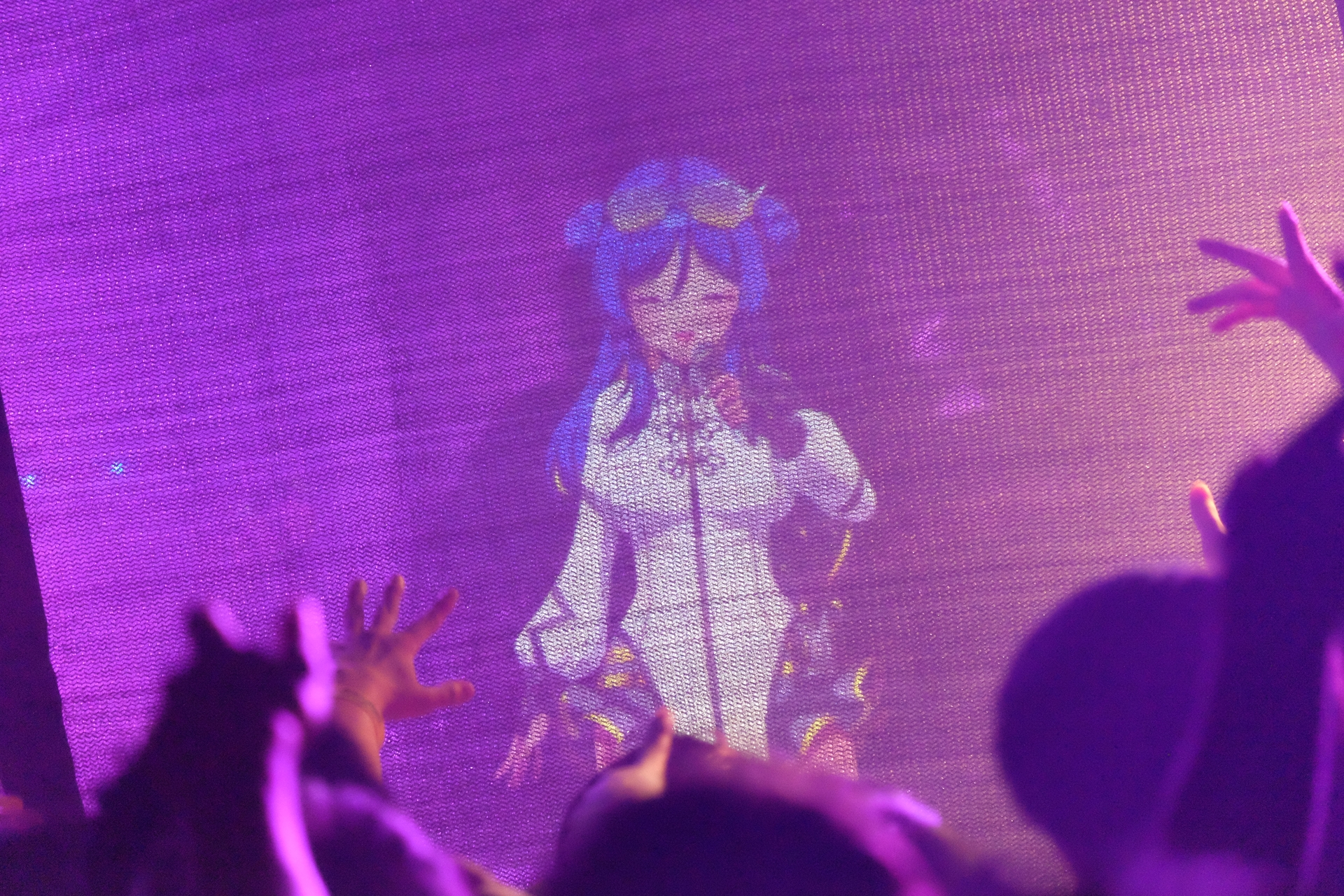 “破壊”を歌う2曲に身を委ねるオーディエンスたちだったが、壇上のシンガーも止まらない。まだまだいけるだろと言わんばかりに、「St4rlight」を力強く歌い上げる。パワフルな歌を続けざまに熱唱するその声は、スクリーンに映し出された姿でありながら、拳を握り、腕を掲げて熱唱するロックシンガーの姿を幻視させるほどのエナジーに満ちていた。