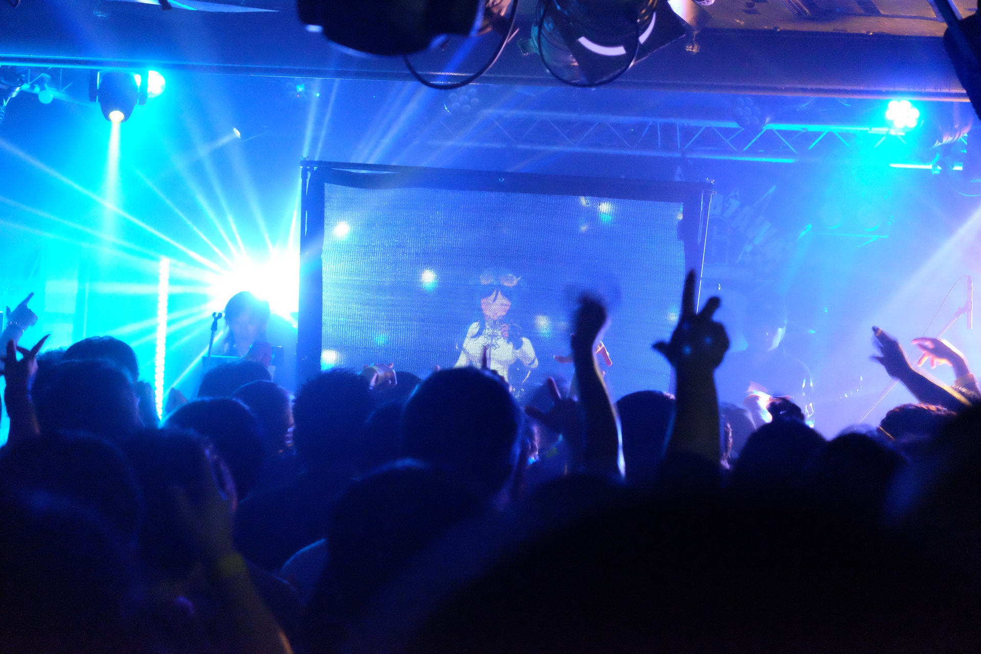 バンドメンバーがスタンバイし、ステージ中央のスクリーンに拠鳥きまゆが登場。雷光のごとくバックライトが煌めき、音で繋がる最高の夜が幕を開けた。