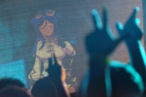 “破壊”を歌う2曲に身を委ねるオーディエンスたちだったが、壇上のシンガーも止まらない。まだまだいけるだろと言わんばかりに、「St4rlight」を力強く歌い上げる。パワフルな歌を続けざまに熱唱するその声は、スクリーンに映し出された姿でありながら、拳を握り、腕を掲げて熱唱するロックシンガーの姿を幻視させるほどのエナジーに満ちていた。