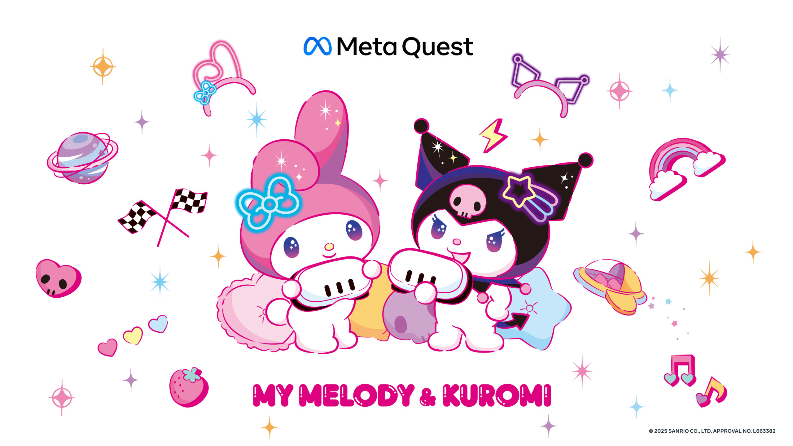 この冬リリース予定のサンリオの新作VRゲーム『Hello Kitty Skyland』を記念し、Meta Questとサンリオのコラボアートが制作されました。この限定デザインでは、Meta Questで遊ぶマイメロディとクロミが描かれています。