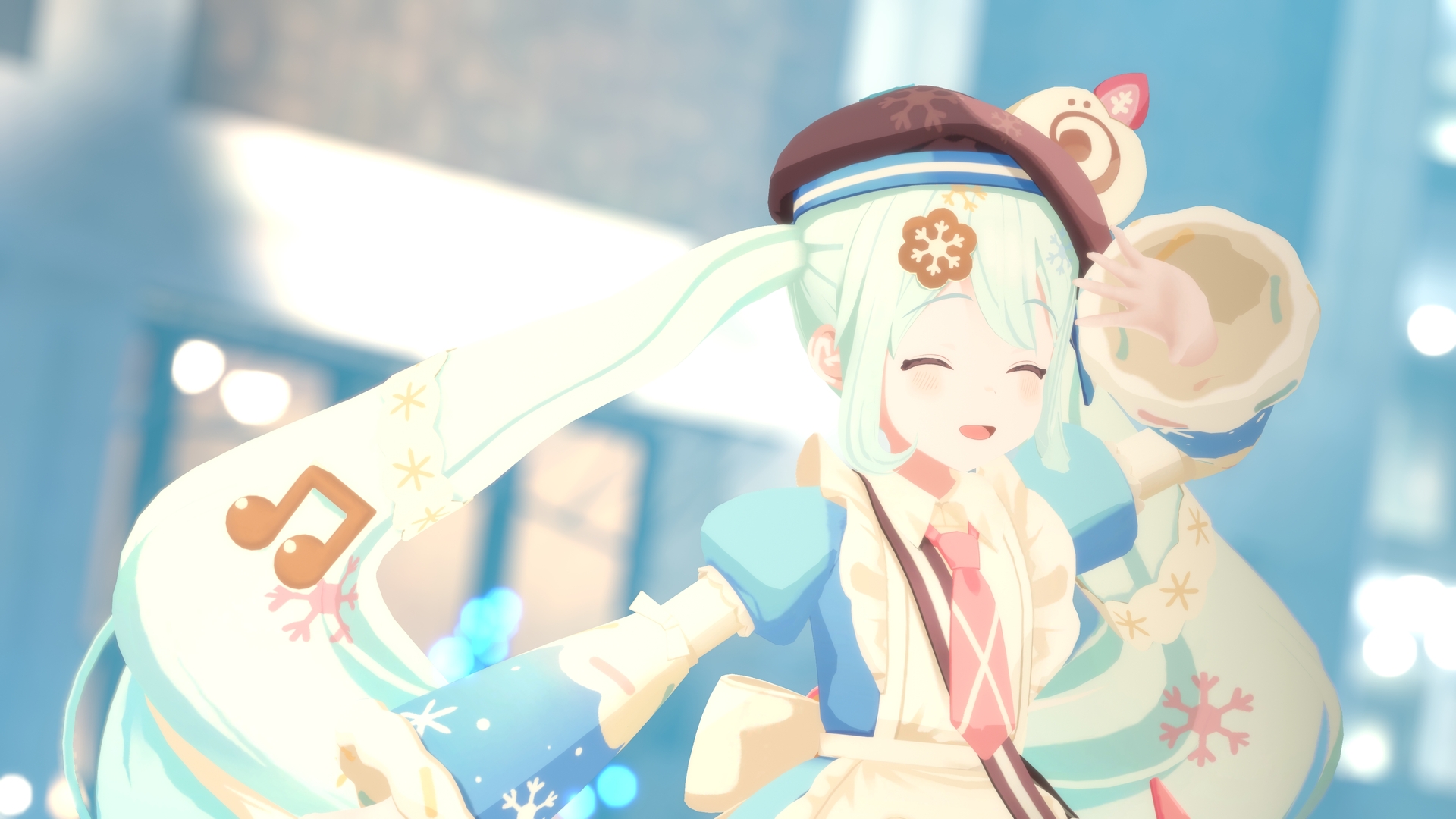 パステルカラーが可愛らしいパティスリーな衣装に身を包んだ雪ミクさんが、今年のテーマソング「SHIAWASE FOR YOU!」を歌って踊ります。